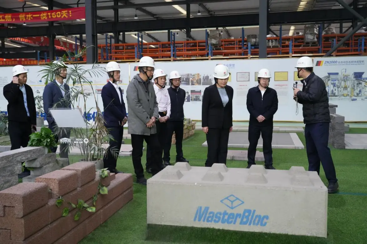 У зоні демонстрації зразків цегли Лю Мінь та його делегація оглянули різну водопроникну цеглу, екологічну цеглу для захисту схилів, цеглу для тротуарної плитки та спеціальні продукти з високою доданою вартістю, отримавши детальне уявлення про їх застосування в будівництві міст з губкою, муніципальному будівництві та комплексній утилізації твердих відходів. Генеральний менеджер Фу Сіньюань пояснив, що компанія постійно оптимізує технологію формування та управління процесом, постійно покращуючи міцність продукту, якість зовнішнього вигляду та ефективність виробництва, активно реагуючи на вимоги екологічного та низьковуглецевого розвитку та сприяючи модернізації будівельних матеріалів до високої якості та захисту навколишнього середовища.