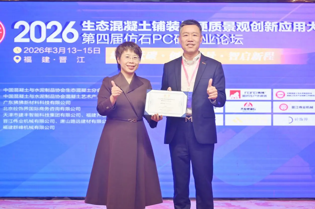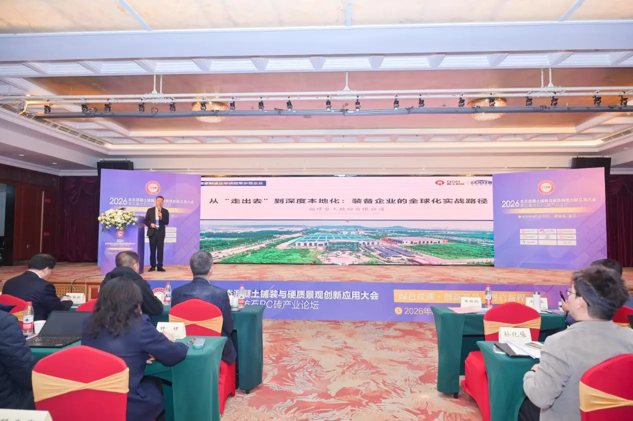 З 13 по 15 березня в Цзіньцзяні, Фуцзянь, відбулася конференція 2026 року з інноваційних застосувань екологічної бетонної тротуарної плитки та ландшафту, а також 4-й промисловий форум з цегли з імітації каменю. Конференція на тему «Екологічні та низькі викиди вуглецю: інноваційні ландшафти, розумне визначення нового курсу» об’єднала експертів, науковців і представників компаній із таких галузей, як дослідження та розробки, виробництво, проектування, будівництво, випробування та виробництво обладнання. Разом вони досліджували інноваційні шляхи розвитку екологічної промисловості бетонної бруківки та ландшафту. ФуцзяньQuangong Machinery Co., Ltd.було запрошено на захід, де було створено виставковий стенд для демонстрації технологічних досягнень компанії та комплексних системних рішень у сфері обладнання для виробництва бетонних виробів.