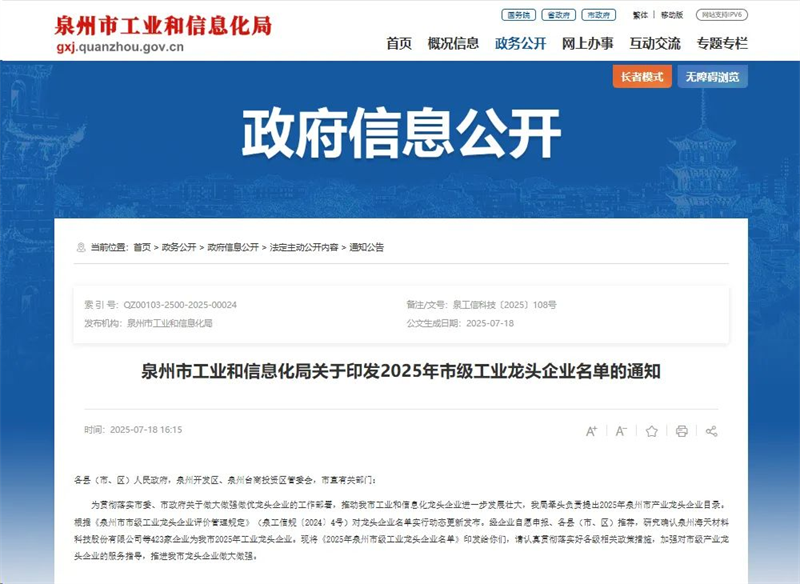 Нещодавно Муніципальне бюро промисловості та інформаційних технологій Цюаньчжоу офіційно оприлюднило «Список провідних муніципальних промислових підприємств Цюаньчжоу на 2025 рік». Fujian QGM Co., Ltd., яка здобула лідируючі позиції в галузі досліджень і розробок інтелектуального обладнання, екологічного виробництва та розширення глобального ринку, була обрана серед 423 провідних промислових підприємств муніципального рівня.