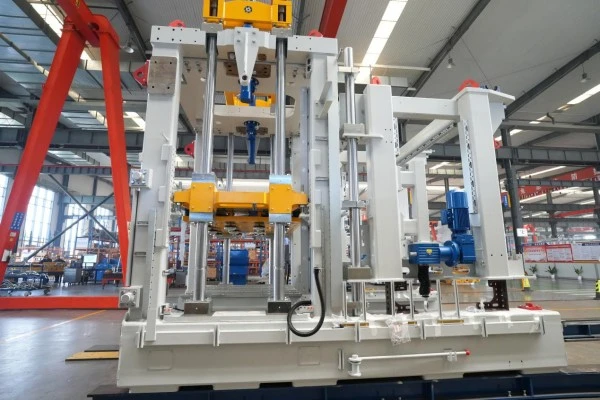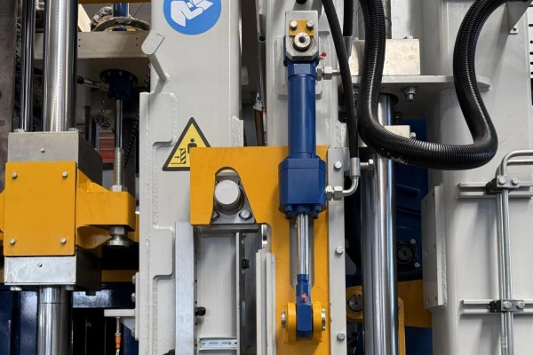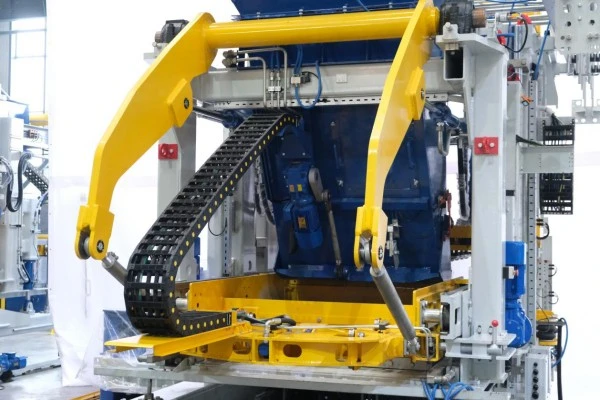 9Пристрій блокування головки преса Цей механічний запірний механізм складається з високоміцних запірних блоків, клиноподібної прес-головки та гідроциліндрів подвійної дії. Під час виймання з форми циліндри приводять у рух фіксуючі блоки, радіально затискаючи головку преса, утворюючи механічний тупик. Потім форма випускається під постійним тиском, ефективно усуваючи пружний відскок і мікрорух — забезпечуючи гострі краї цегли, гладкі поверхні та значно покращений рівень якості продукції.