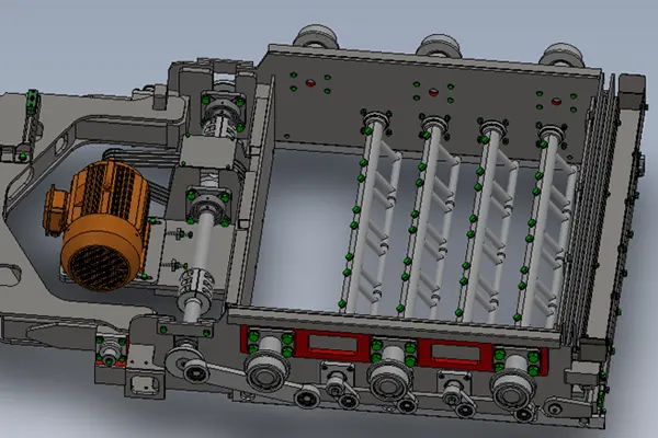 4Підвісна система годування Підвісна система подачі має модульну конструкцію, що включає коробку подачі, скребок, трамбувальну щітку та пристрій для руйнування арки. Ящики для годівлі для лицьової суміші та основної суміші встановлені на рамі годівниці, що забезпечує швидку заміну та оптимальну ефективність годування.